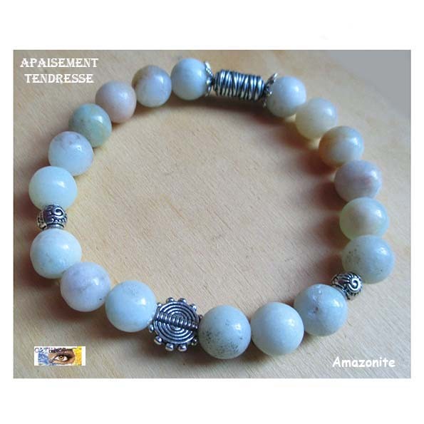 ♥ Bracelet "Apaisement-Tendresse" - Amazonite et métal argent ♥