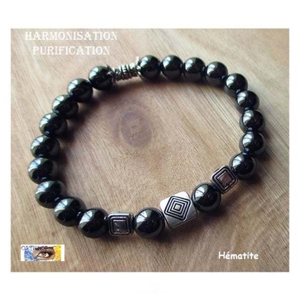 ♥ Bracelet "Harmonisation-Purification-Volonté" - Hématite - Métal argent ♥