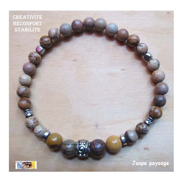 ♥ Bracelet "Créativité-Réconfort-Stabilité" Jaspe paysage métal argent ♥
