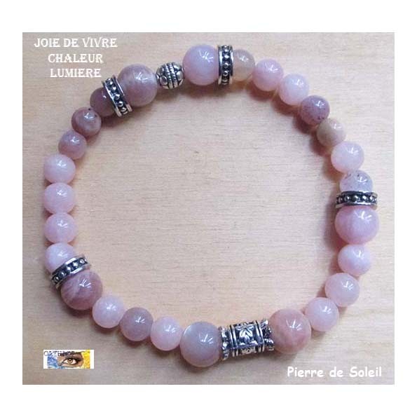 ♥ Bracelet "Joie de vivre-Chaleur-Lumière" Pierre de soleil - Métal argent ♥