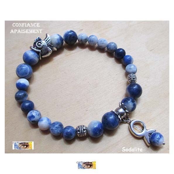 ♥ La Sodalite est souvent confondue avec le Lapis-lazuli, mais cela n'a que peu d'importance, elle ont les mêmes propriétés.Bien que moins puissante, ses effets sont similaires, nous devrons être plus patient pour voir ses résultats.Très utile pour clarifier l'esprit et soulager nos peines et angoisses.Elle nous procure un paisible sommeil et nous apporte des rêves prémonitoires.Efficace dans la lutte contre le diabète, fortifie la thyroïde, les glandes.Stimulant le cerveau et la lymphe, elle améliore la circulation sanguine.Pierre d'éveil, elle nous ouvre le troisième œil et nous prépare à l'intuition.