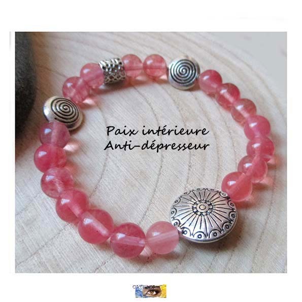 ♥ Bracelet "Paix intérieure-Anti-dépresseur" - Quartz cerise - Métal argent ♥