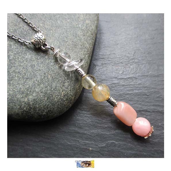 ♦ Pendentif - Pierre de soleil, Citrine, Cristal de roche