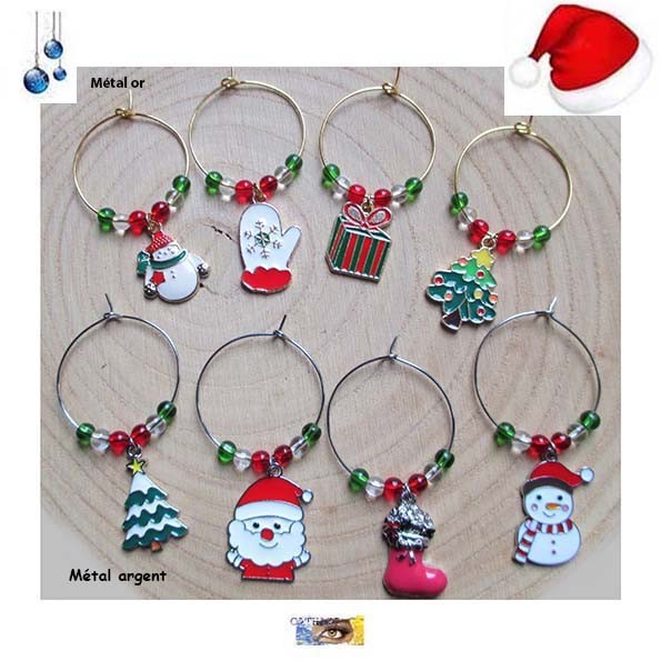 ♥ Marque-verres De Noël Pour Verres À Pied, Métal or et Métal argent - Breloques émail, Perles Verre ♥