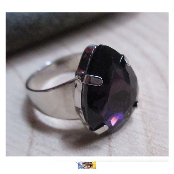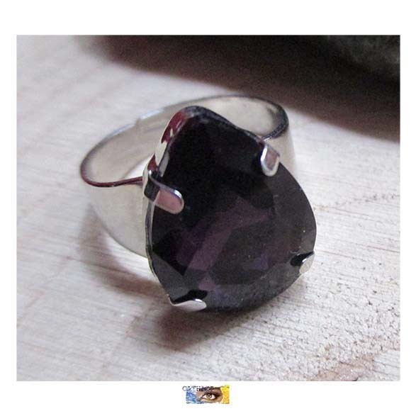 ♥ Bague Cabochon Strass "Poire" Améthyste - Métal argent ♥