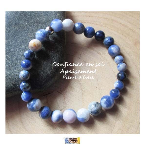 ♥ La Sodalite est souvent confondue avec le Lapis-lazuli, mais cela n'a que peu d'importance, elle ont les mêmes propriétés.Bien que moins puissante, ses effets sont similaires, nous devrons être plus patient pour voir ses résultats.Très utile pour clarifier l'esprit et soulager nos peines et angoisses.Elle nous procure un paisible sommeil et nous apporte des rêves prémonitoires.Efficace dans la lutte contre le diabète, fortifie la thyroïde, les glandes.Stimulant le cerveau et la lymphe, elle améliore la circulation sanguine.Pierre d'éveil, elle nous ouvre le troisième œil et nous prépare à l'intuition.