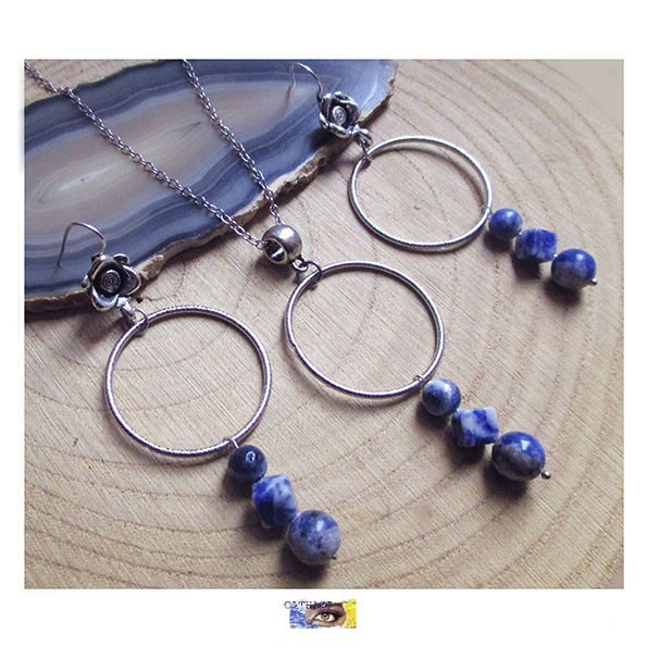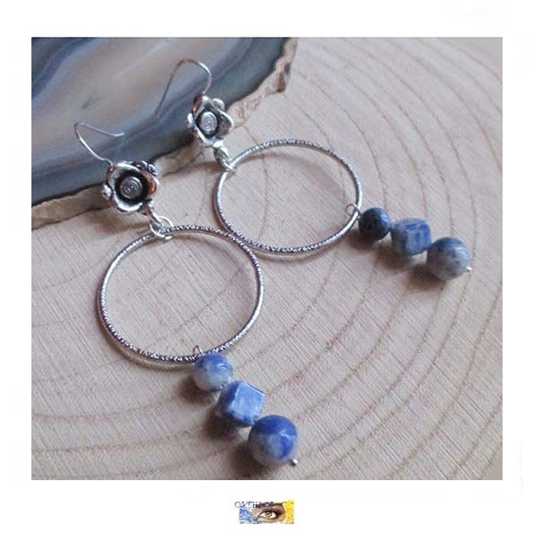 Boucle d'oreille Design alliant la beauté des perles Sodalite à l'éclat de l'Acier