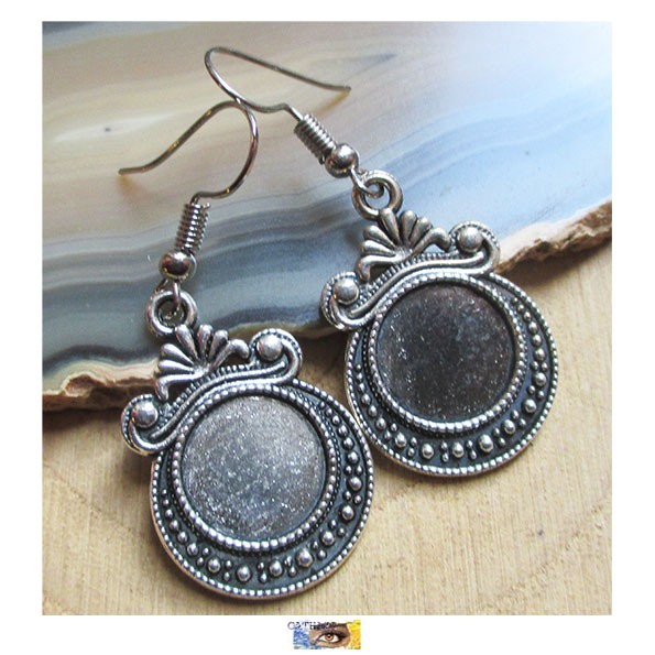 1 Support Boucle Oreille crochet Vintage pour Cabochon - Métal argent