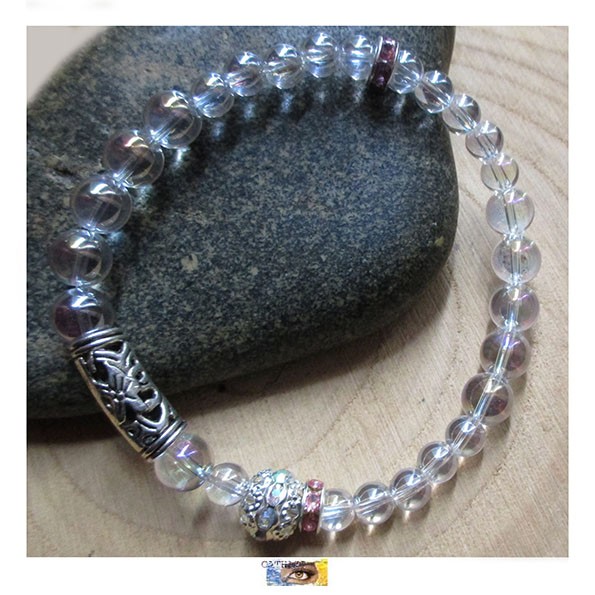 Ce joli bracelet de perles de Quartz Angel Aura, allie l'élégance des pierres naturelles à l'éclat du métal et du stass