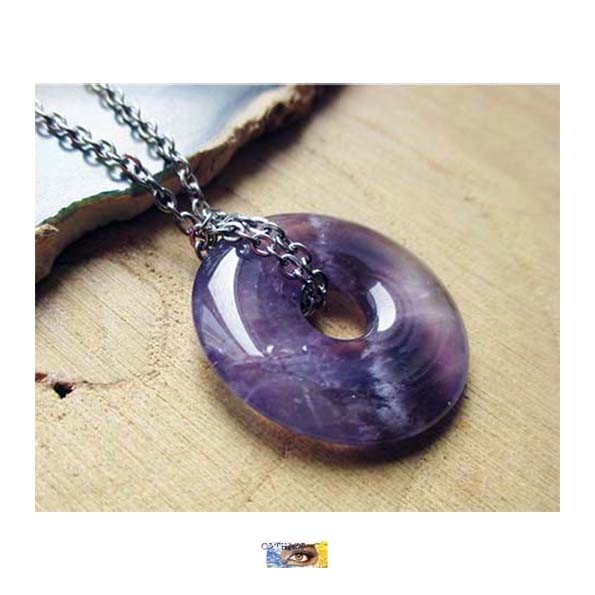 ♥ Chaîne "Paix Plénitude" - Pendentif Améthyste donut - Acier inoxydable ♥