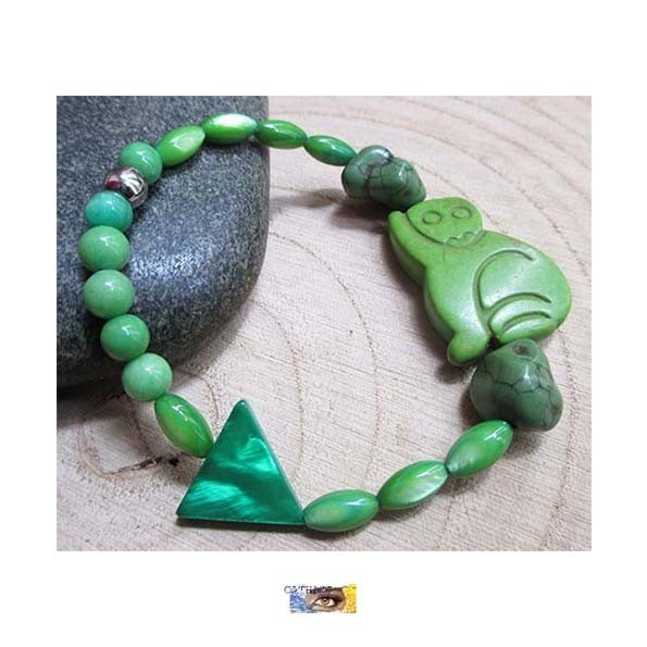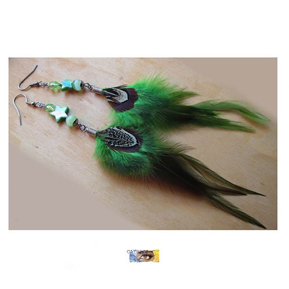 ♥ B.O. "Plume verte"- Œil de chat, Nacre, Cristal - Acier inoxydable ♥