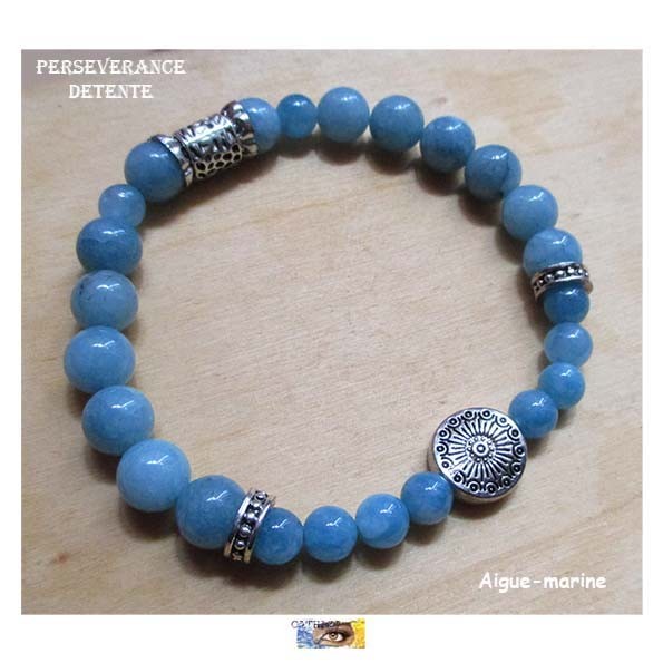 Bracelet "Persévérance-Détente" - Aigue-marine - Métal argentBracelets