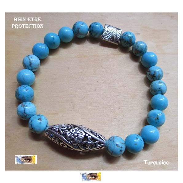 Bracelet "Bien-être-Sagesse-Protection" Turquoise - Métal argentBracelets