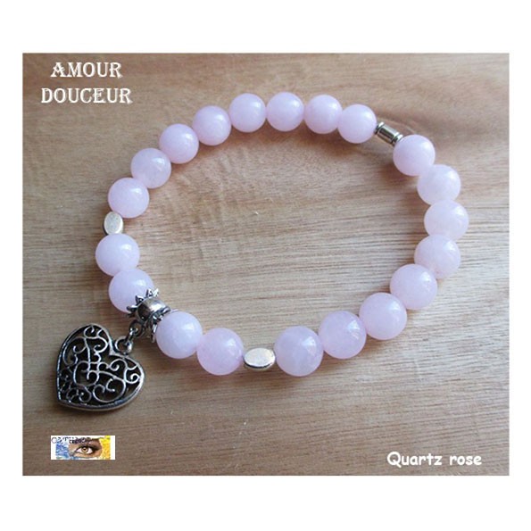 Bracelet "Amour-Douceur" - Quartz rose - Cœur ouvragé - Métal argentBracelets